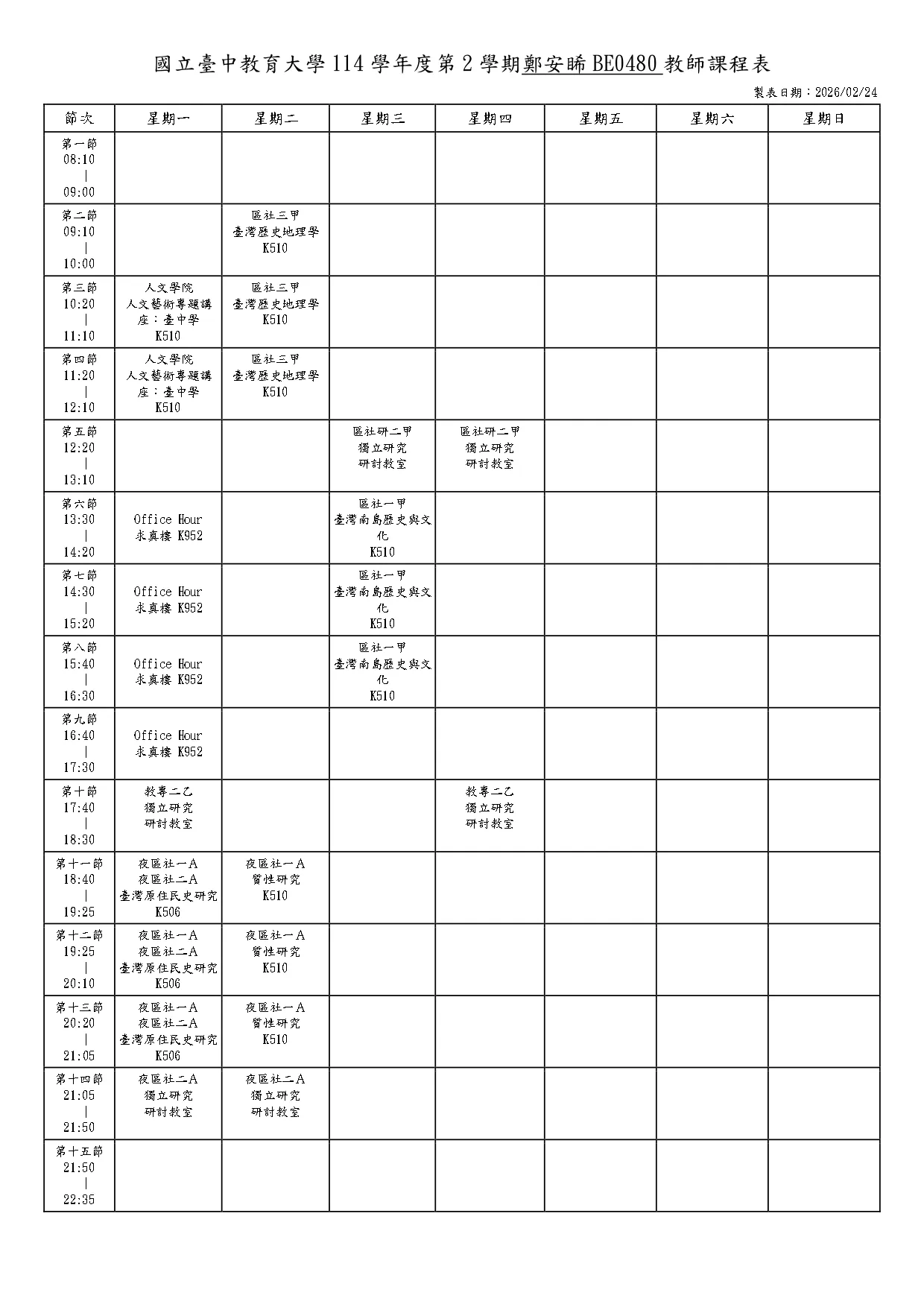 教師課表